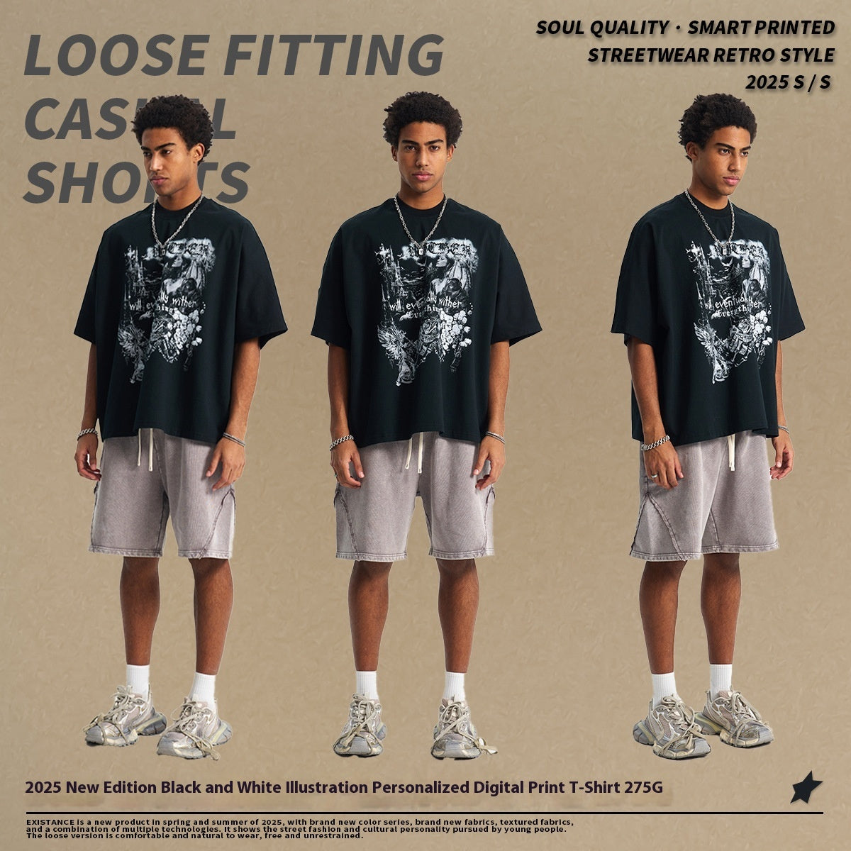 Male Black And White Illustration Personalized Printed T-shirt